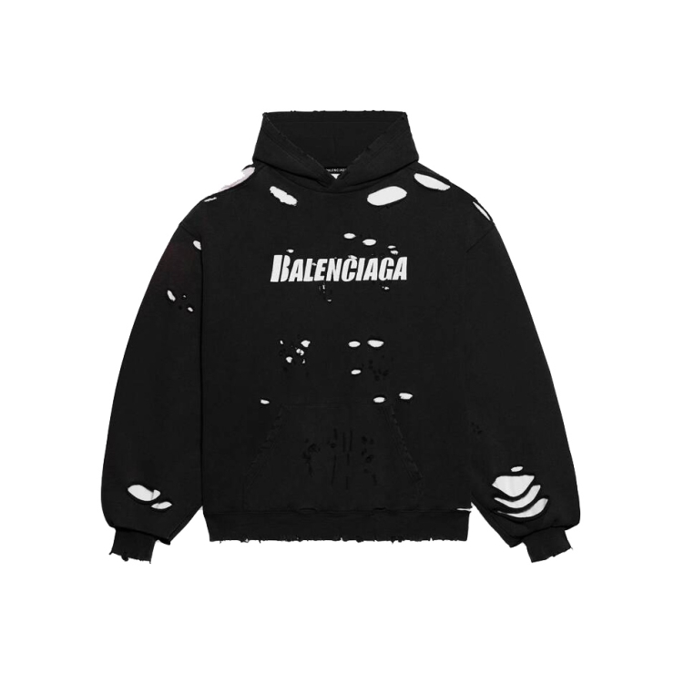 Balenciaga Caps Destroyed Hoodie Black/White